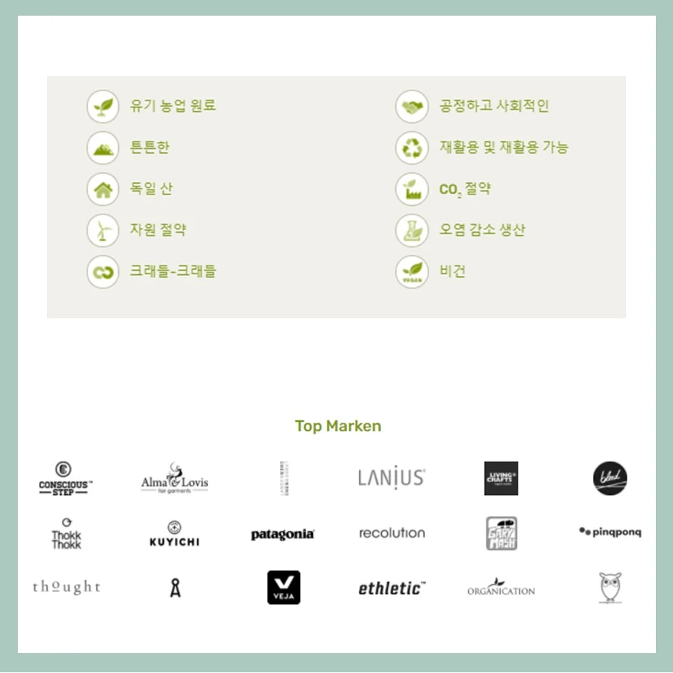 지속가능에 초점을 맞춘 친환경 이커머스 플랫폼을 표방하며 2,000여 유럽 브랜드 200,000 품목의 지속가능성제품으로 구성합니다.