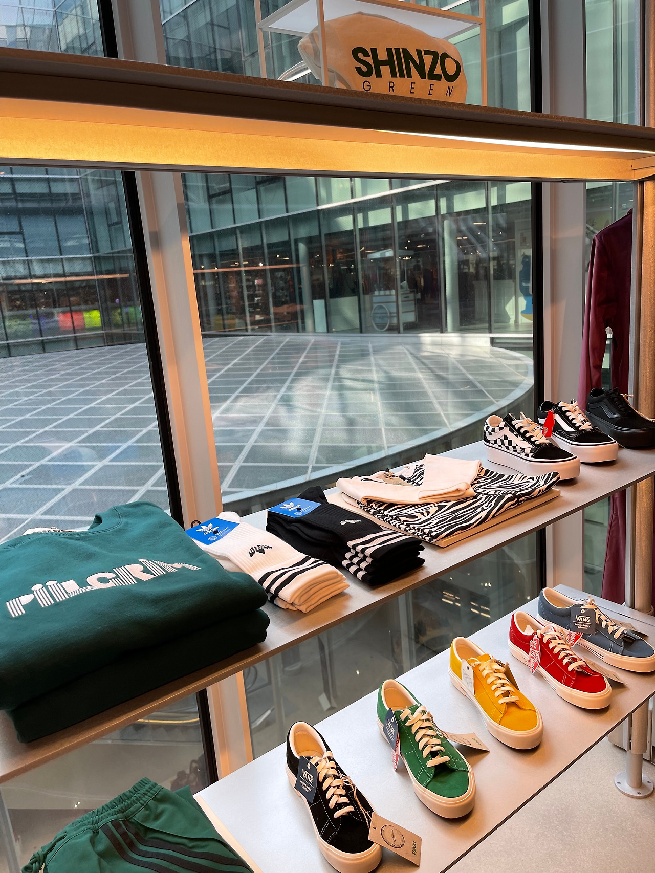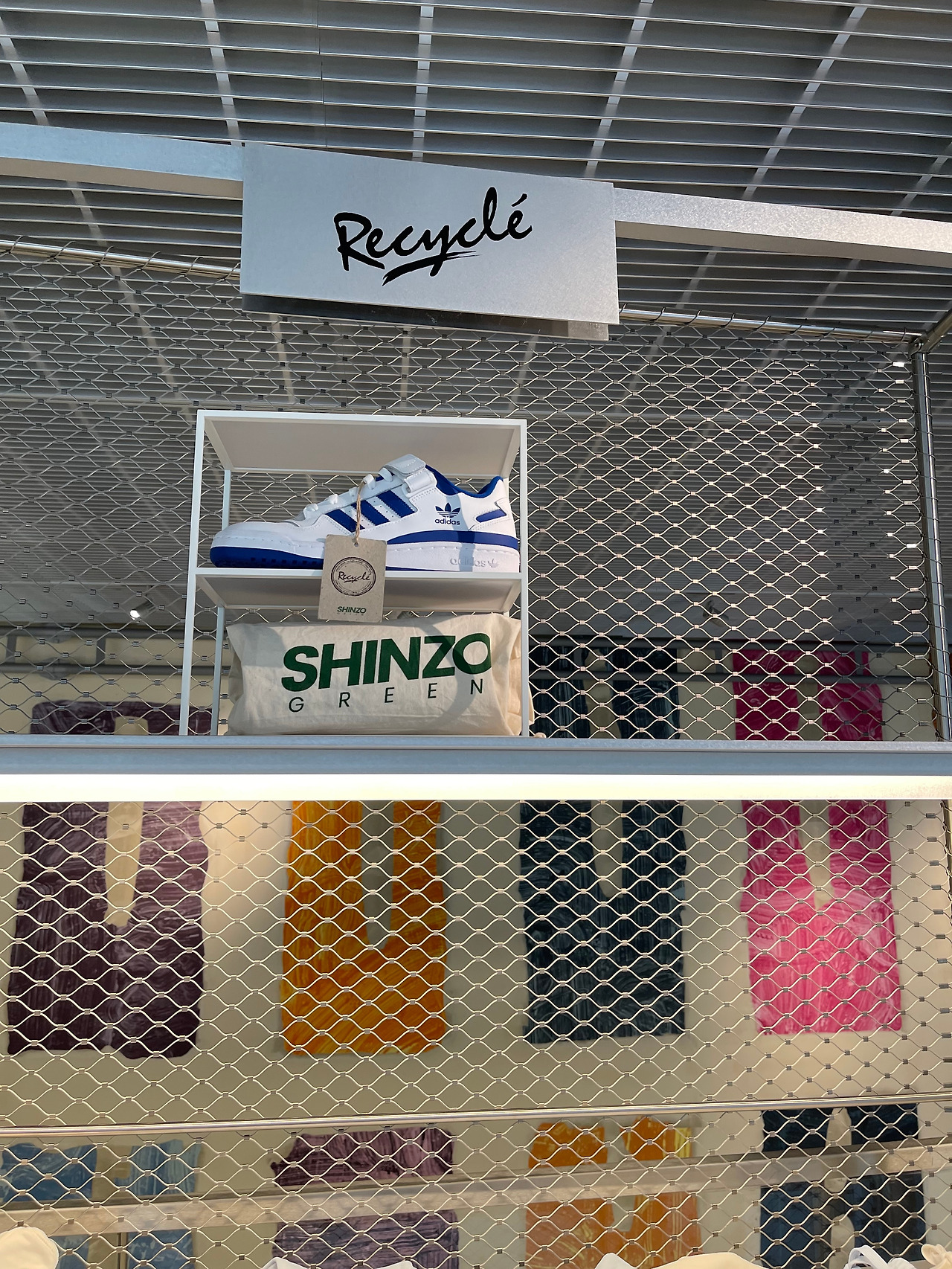 리볼리 건물에서 가장 인상적이었던 곳은 애슬레저 스페이스인 신조 그린(Shinzo Green)이었다. 스포츠 패션의 역사와 혁신이 혼합된 스니커즈 편집숍으로 유명한 신조(Shinzo)는 사마리텐 백화점에서만 볼 수 있는 친환경 스니커즈와 스웻 셔츠 등을 구성했다. 퐁뇌프에서 리볼리 건물로 연결되는 통로부터 100m² 면적으로 구성된 신조 그린은 로컬, 재활용, 비건, 바이오, 업사이클링 등 지속가능성 이슈 상품만 전문적으로 진열되었다. 아디다스, 반스, 푸마, 베자, 팀버랜드 등 다양한 디자인의 리사이클, 비건, 바이오, 업사이클링 제품들이 섹션별로 구성되어 있다.