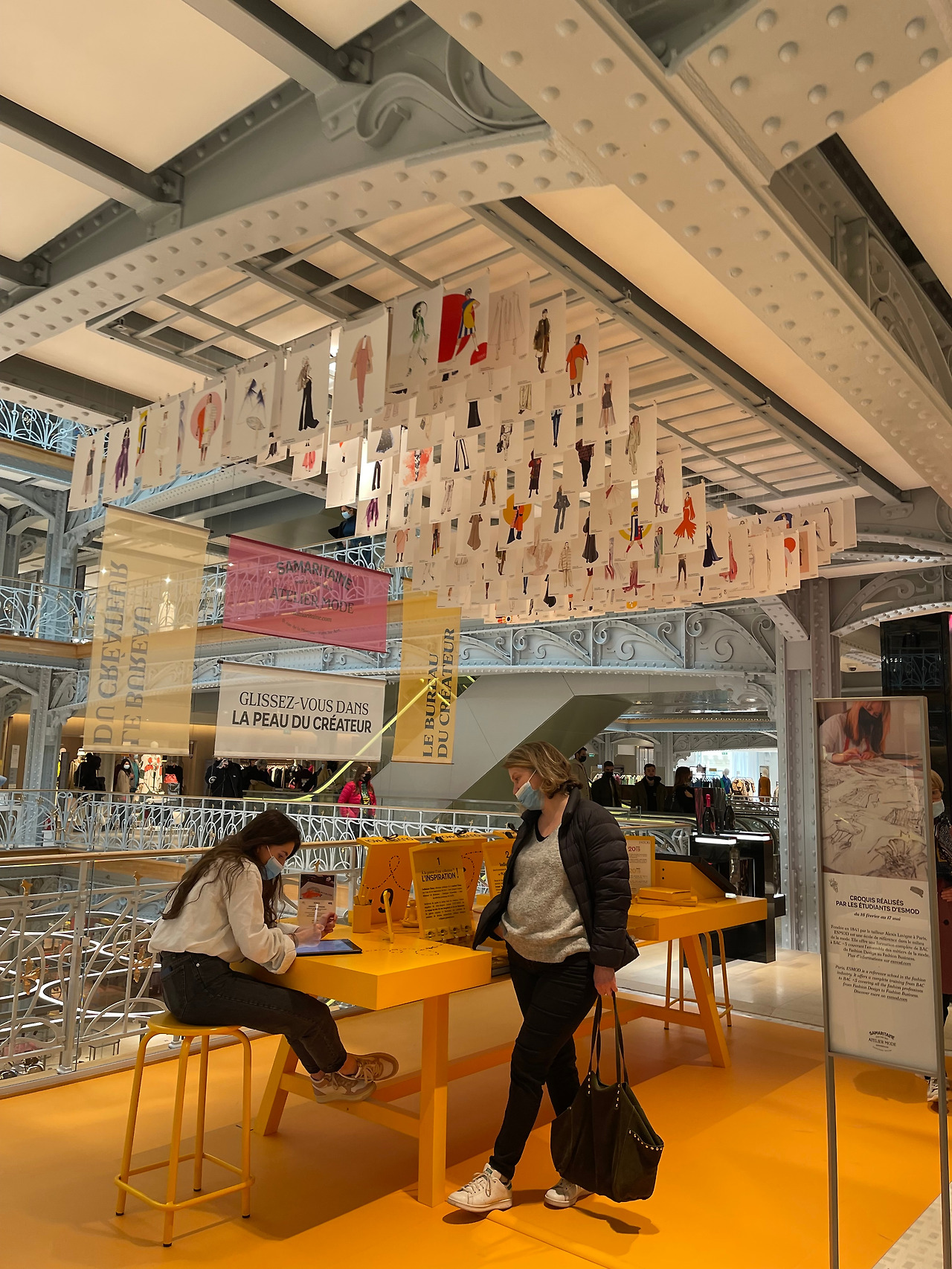 개인화, 맞춤 컨셉의 ‘패션 아틀리에’를 모토로 디자이너의 작업실 공간을 옮겨와, 패션 학교 에스모드 학생들의 스케치와 함께 아틀리에의 태블릿을 통해 직접 스케치하며 잠깐이나마 패션 디자이너 체험을 해볼 수도 있었다. 컬렉션이 완성되는 과정을 볼 수 있고 상담도 할 수 있다.