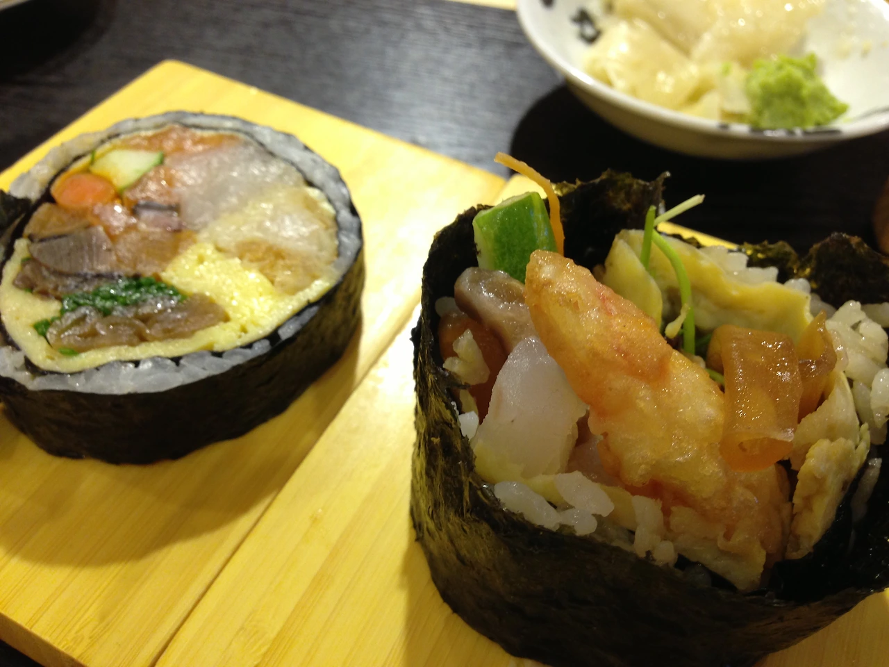 어른인 척 먹었다고 생각했는데, 유난스러워 보였던걸까. 마지막 한 점 이었던 *후토마키(太巻き; 일본식 김초밥)차례가 되었을 때, 신랑의 앞접시에는 특급 꼬다리가 올랐다. 영광이었지.