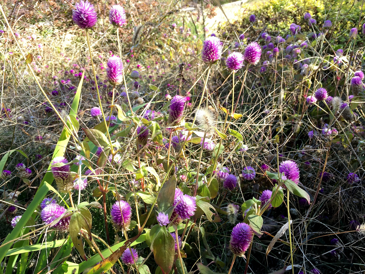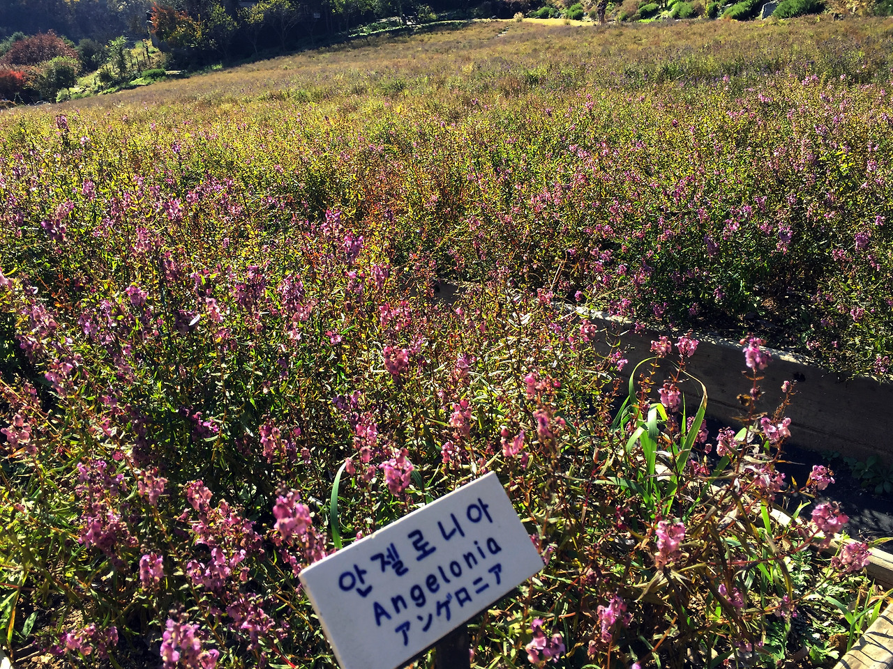 우리가 갔을 때는 보라빛 안젤로니아가 끝물이었다. 사진으로는 바싹 마른 나뭇가지만 남은 듯이 보이지만 자세히 보면 제 계절을 다 살고 쪼그라드는 모양으로 보라빛이 어른거렸다. 안젤로니아 사이로 천일홍도 간간히 보였는데, 보라빛이 생생한 계절에 다시 한 번 이 풍경을 보고 싶었다. 물론 시리게 새파아란 하늘에 한적한 정취를 만끽하기에는 이 계절이 좋았겠지. 보라의 꽃만큼 많은 사람들이 들썩일지 모를 일이다.