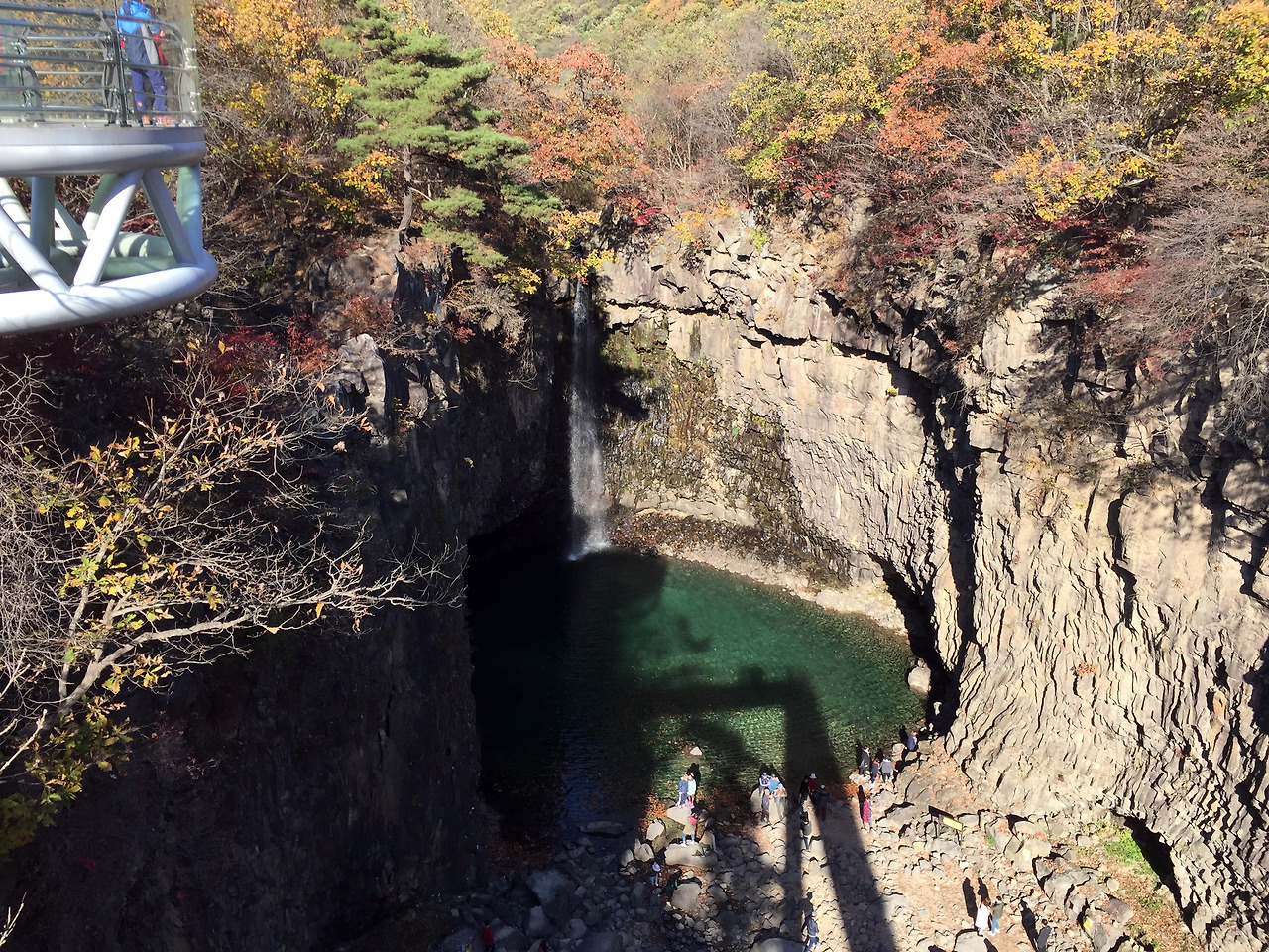 재인 폭포는 가을의 명소라고 불리운다. 진입로의 가을 풍광도 그렇지만 도착해서 내려다보는 순간, 입이 떡 벌어졌다. 서울에서 불과 몇 시간 달려 도착한 곳인데 비현실적이었다. '갑자기' 펼쳐지는 탓에 더욱 그런 기분이 든다. 절벽의 위로 얹어진 가을 단풍은 어느 훌륭한 조경가가 구성한 것처럼 빨강, 노랑, 초록의 어울림이 감탄을 자아냈고, 폭포 아래의 웅덩이는 옥빛으로 맑다. 아찔한 계단을 후들후들 떨며 오르내렸지만 이렇게 멋진 여행지를 찾아내다니! 감탄해마지 않았다. 너무 유명해지지마. 또 올께.