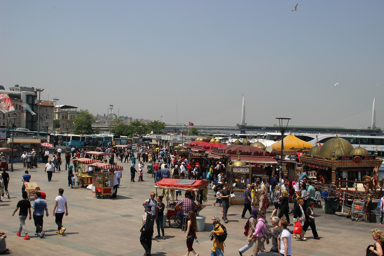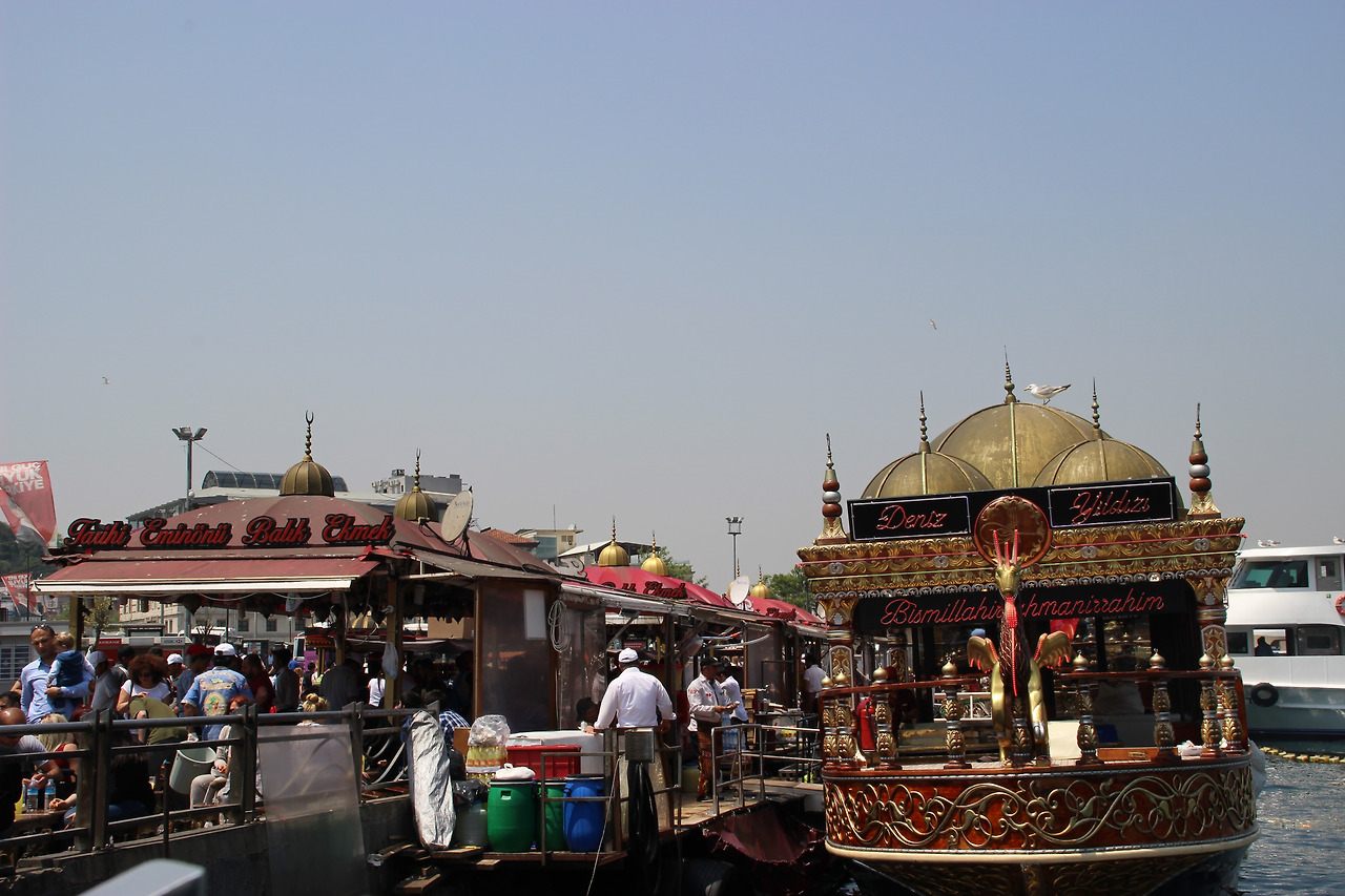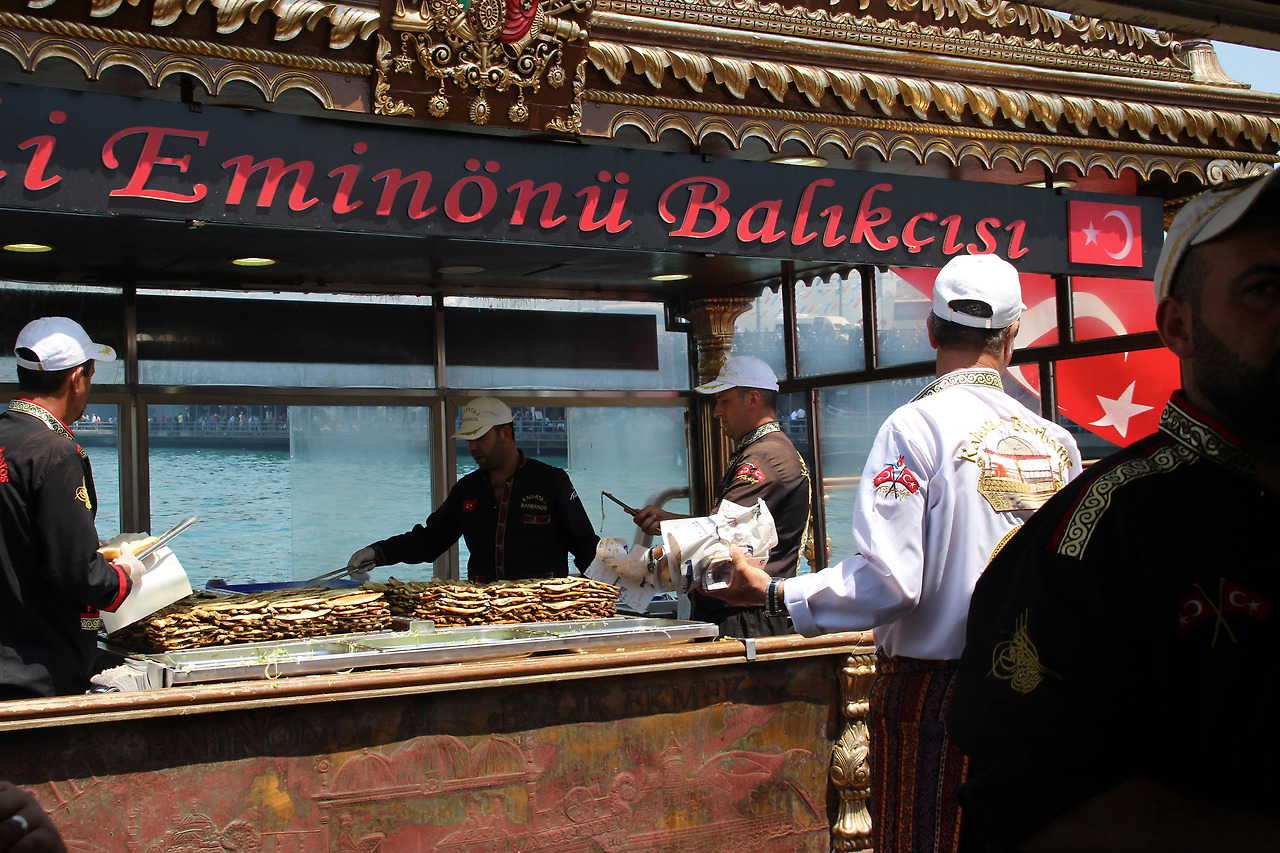 구시가지와 신시가지를 연결하는 갈라타 다리에는 낚시꾼들이 즐비하고, 관광객이 북적인다. 그 주위에 상권이 형성되어 이스탄불의 명물이라 불리우는 고등어 케밥을 파는 곳도 숱하게 보였다. 소세지, 닭꼬지, 붕어빵이야 길거리에서 많이 봤지만 뱃전에서 고등어를 구워 수북하게 쌓아둔 모습이라니!