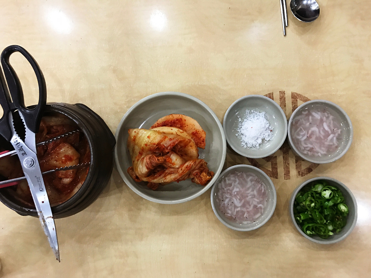 반찬은 단출하다. 김치와 새우젓, 송송 썰어 낸 고추, 소금, 들깨가루가 전부다. 순대국은 그야말로 '한 그릇 음식'이기 때문에 이마저도 필요하지 않을 수 있지만 '기호에 따라' 조절 할 수 있는 조미료와 김치만 두는 것이다. 특히 작은 항아리에 담겨 양껏 덜어먹을 수 있는 김치가 달큰하니 맛있어 주문한 음식이 나오기 전에 계속 집어 먹게 된다.