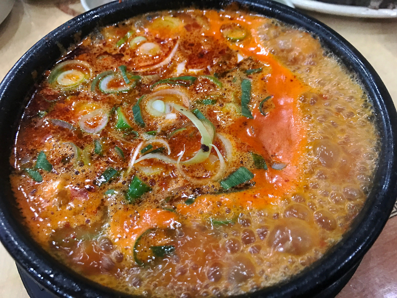 순대국은 두가지 선택지가 있다. 뽀얀 본연의 국물과 얼큰한 빨간 국물. 매운 맛을 좋아하는 분들, 얼큰한 해장을 원하는 분들은 빨간 국물을 선호할 수 있지만 순대국은 순대국답게 오리지널을 추천한다. <청화집> 순대국은 건더기가 푸짐하기로 유명하다. 하얀 밥을 푹푹 퍼서 김치 얹어 먹다보면 배부른 만족감에 '행복은 이런 것이야'를 외칠 수 있을 것이다.