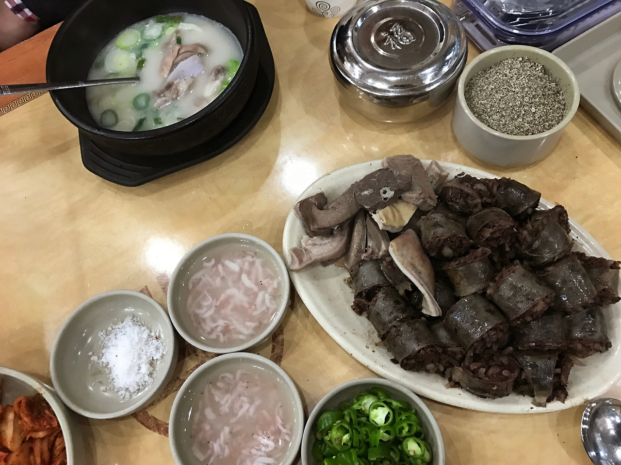 <청화집> 메뉴는 심플하다. 국물을 먹을 것인가, 순대를 먹을 것인가만 정하면 된다. 다만, 국물을 선택해 순대국을 주문해도 넘치는 건더기에 놀라고 순대를 푸지게 먹을 생각으로 순대 한 접시를 주문해도 딸려나오는 국물에 감사할 것이다.