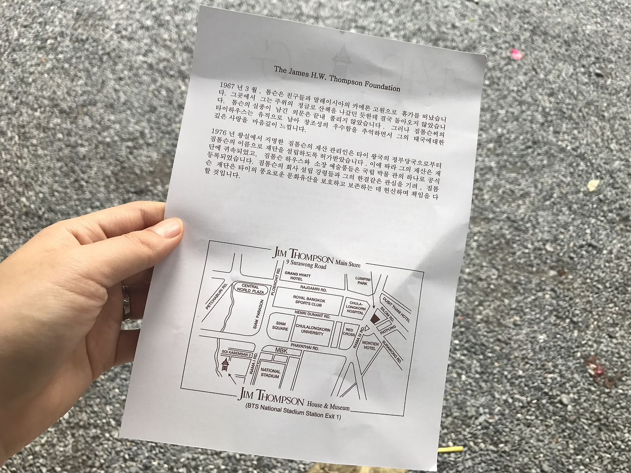 태국의 매력에 일찌감치 눈을 떠서 방콕에 자리 잡았던 이방인 ‘짐톤슨’. 그의 이름은 방콕 여행 준비를 하다보면 심심찮게 볼 수 있다. “방콕 여행 기념 선물로 면세점에서 사면 좋다”, “방콕에 아울렛이 있어 싸게 살 수 있다.”와 같은 추천사와 후기가 잔뜩 남겨져 있기 때문이다. <Jim Thompson>은 ‘태국의 마리메꼬’와 같은 브랜드이다. (출처 없이 칭하는 비유다.) 패브릭 생산물이 주를 이루는 브랜드.