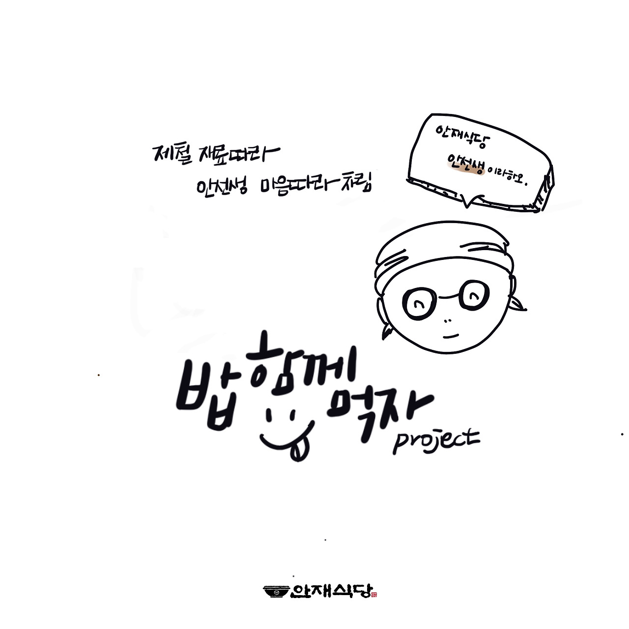 이전에 “뭐 먹지?”라는 말걸기 물음표로 결속되었던 관계는 “먹자!”느낌표로 맺어지며 더욱 단단해졌다. 그리고 우리의 결속력은 <안재식당> 오픈과 함께 한 발 더 나아가 청유형에 이른다.
