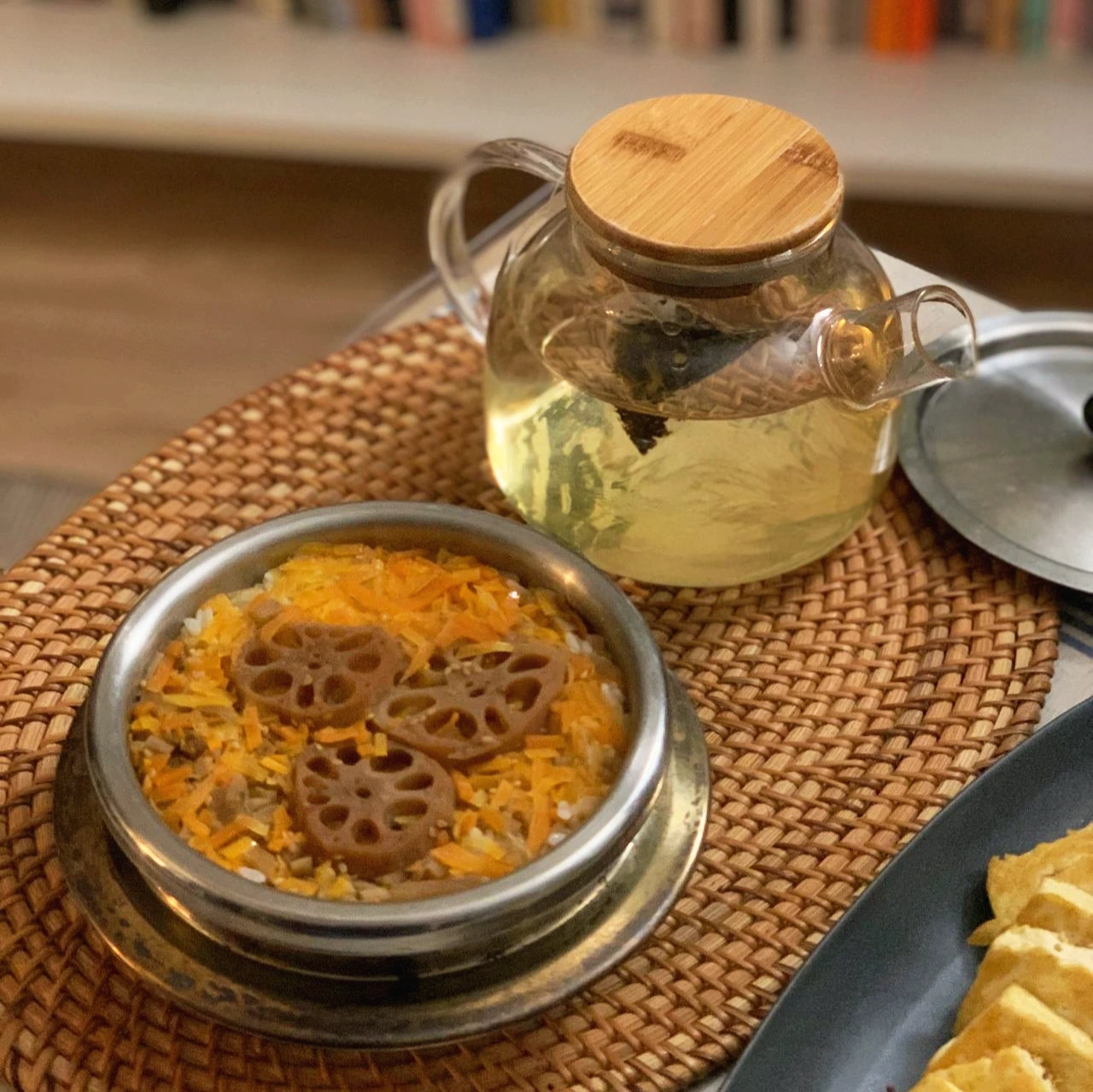 이 계절에 뿌리 채소를 넣고 지은 솥밥은 사실 실패 없는 도전이다. 양념장을 따로 준비하면 간을 못 맞출 일도 없다. 단단한 채소를 다듬는 과정에서 모양내기도 좋다. 당근과 우엉을 채썰고, 연근을 올려 냈던 어떤 날의 솥밥은 이렇게 자태가 고왔다.