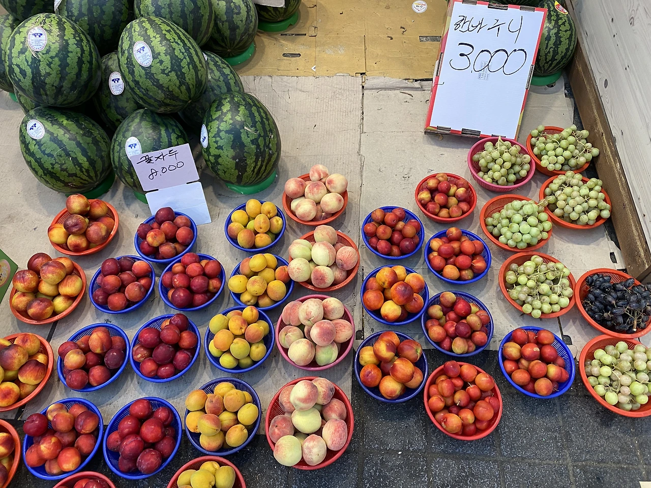 동그랗고 알록달록한 과실의 생기가 차오른 시장은 발걸음을 멈춰 웃음짓게 한다.