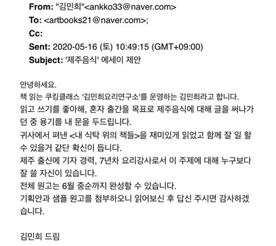 브런치에 그간 올렸던 음식이야기들을 묶어 주제를 정해 기획안을 작성했다. 스스로 마감일을 정해 원고를 써나갔다. 누가 시킨 것도, 이 노력이 결실을 맺게 될지도 모르는 상황이었지만 글쓰는 것만이 당면 과제인마냥 사력을 다해 썼다. 어느 정도 원고가 마련되었을 때 독자투고를 해보기로 결심했다.