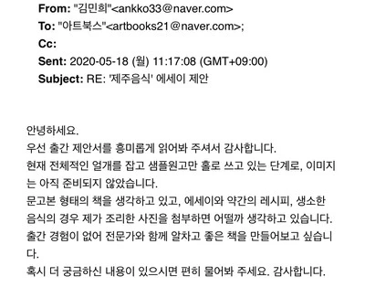 투고로 출간 기회를 얻기란 낙타가 바늘구멍을 통과하는 것처럼 어렵다는 말을 들은 적 있다. 하지만 정말 괜찮은 글이 있다면 그것을 알아봐줄 사람이 분명 있을거라 생각했다. 그동안 인상적으로 읽은 에세이를 펴낸 출판사들의 리스트를 정리했다. 저자 소개와 기획 의도, 목차를 담은 기획안과 샘플원고 다섯편을 첨부해 출판사로 송고했다.