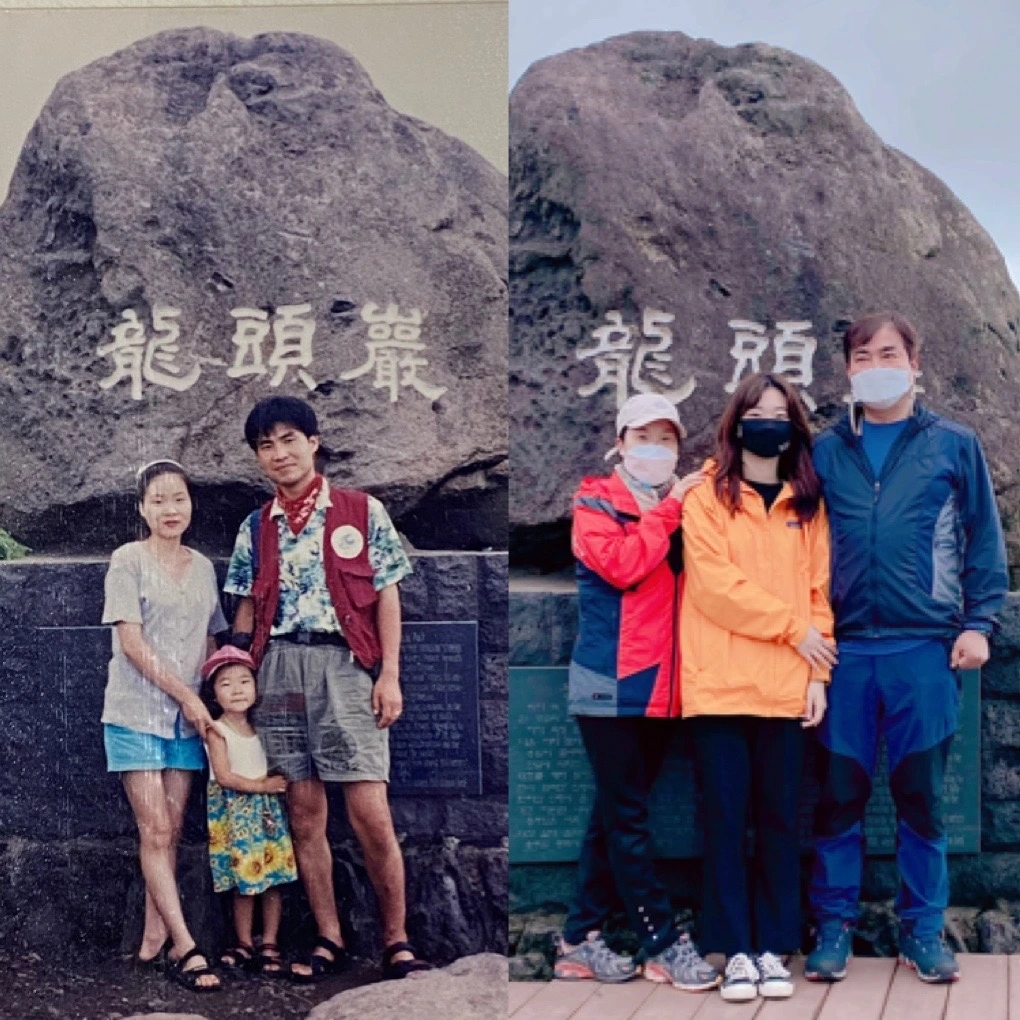 이날은 엄마의 음력 생일이라 성게 미역국을 먹으러 수요 미식회에 나왔다던 유명한 식당에 가서 가벼운 축하 인사를 나눴다. 식사 후 천지연 폭포에 간 우리는 부모님의 신혼여행 사진과 똑같은 장소에서 똑같은 포즈로 추억 사진을 찍었다.