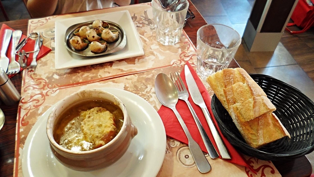 가는 길에 고흐의 집을 봤고(그냥 파란 대문 하나였다.) 사크레쾨르 사원 앞에서 사진 몇 장 찍고 밥집을 찾아갔다. 너무 덥고 배고파서 그냥 아무 데나 보이는 곳으로 갔다. 전채요리+본식이 17.90유로였다. 나는 전채로 양파수프를, 언니는 달팽이 요리를 시키고, 본식으로 나는 스테이크를, 언니는 오리요리를 시켰다. 음료를 물어봐서 미네랄워터를 달라고 했더니 4.50유로나 했다. 물 하나에 6천 원 꼴이라니. 언니와 나는 충격에 빠졌다.