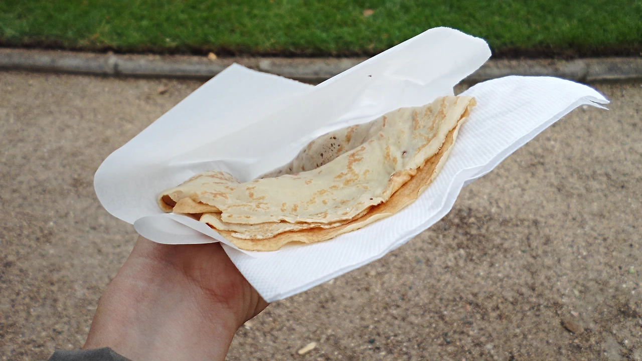 개선문에 도착하자마자 배가 고파서 우선 끼니부터 해결하자 싶어 무작정 걸었다. 간단히 crepe를 먹기로 했다. 이전부터 누텔라 크레페의 맛이 궁금했기 때문이다. 첫날 치즈 핫도그를 사 먹었던 그 가판대를 찾아가 3.00유로를 주고 크레페를 샀다. 끝부분을 조금 뜯어먹어보니 핫케이크 반죽 맛이었다. 공원 분수대 앞에 자리를 잡고 앉아 크레페를 먹었는데, 처음 먹는 누텔라의 맛은 생각대로 무지하게 달았다. 몇 입은 맛있게 먹고, 나머지 입은 너무 달아 속이 느글느글했다.