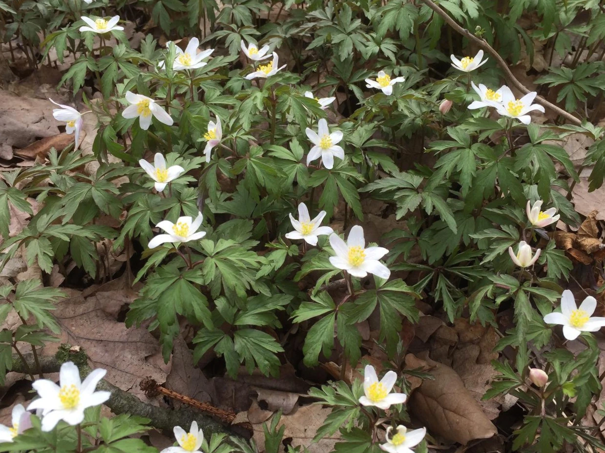 울창한 나무 아래에 하얗게 피어있는 꽃, 작고 순결해 보이는 이 꽃의 이름은 하늘 바람꽃이다. 한국의 깊은 산속에서 바람이 차가운 봄날 잠시 피었다가 지는 것을 본 적이 있다. 개화 시기가 잠깐이었던 것에 비하면 이곳에선 한 달 내내 오가며 하얗게 무리 지어 핀 바람꽃을 볼 수가 있다. 이 또한 내가 누리는 행복 중 하나이다.