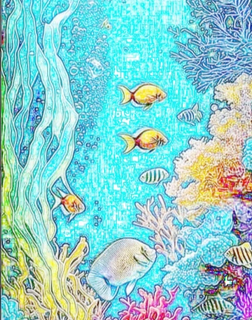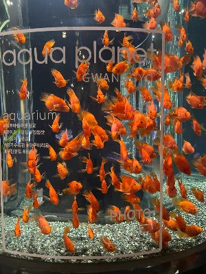 로리는 많은 물고기들이 떼 지어 있는 것을 보고 놀라웠어요.
