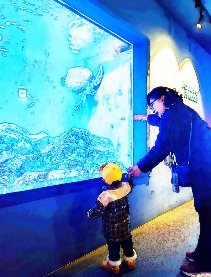 오늘은 엄마, 할머니와 함께 아쿠아리움에 가기로 했어요.