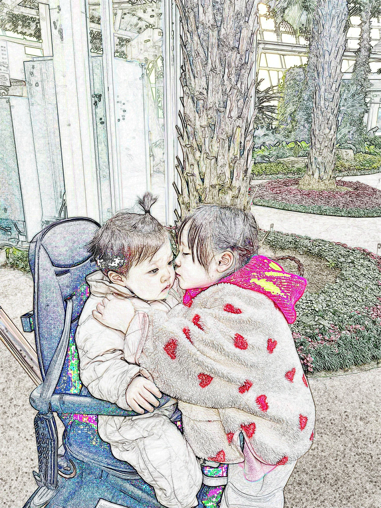 로리의 볼에 뽀뽀를 합니다.
