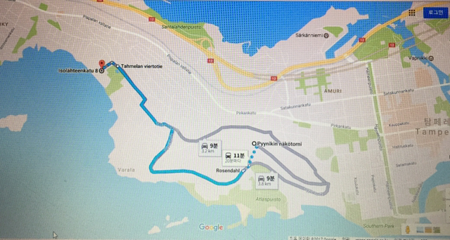 Pyynikki전망대를 목적지로 정하고 버스를 기다렸다. 여행을 할 때마다 스마트폰의 구글맵은 가장 친절한 친구가 된다. 이 친구가 알려준 버스를 타고 얼마쯤 달렸을까. 사람이 없어도 너무 없다. 시내를 벗어난 지 5분도 안되었는데 언제 어디서 모두 내렸는지 버스에도 사람이 없다. 순간 깨달은 것은 버스를 타는 방향을 잘못 알았다는 것, 그래서 목적지와는 반대로 와 버렸다는 것이다. 다행히 내린 곳이 조용한 마을이었고 타고 온 버스를 그대로 타고 가면 내가 가고자 했던 곳으로 갈 수 있다는 것이 감사했다.