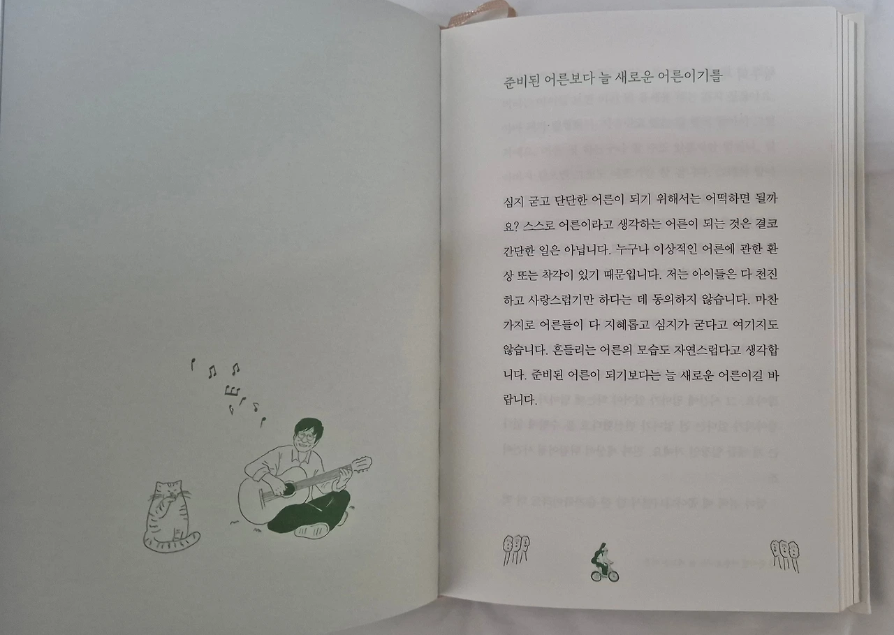 준비된 어른이 되기보다 늘 새로운 어른이 되기를 작가는 당부한다. 나 역시 그런 생각으로 천진한 아기의 모습에서 커가는 아기의 모습을 보며 변화를 자연스레 받아들이기로 한다.