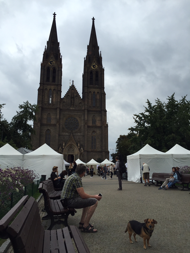 전자바이올린 소리가 베이스 음악과 함께 울려 퍼지고 있었다. 성 루드밀라 성당 주변으로 잘 조성된 정원과 나무 아래 벤치엔 많은 사람들이 앉아 있고 광장엔 하얀 천막들이 옹기종기 설치되어 있는 걸 보니 이벤트가 있는 듯싶다. 발길은 바이올린 소리에 이끌려 성당 앞 광장으로 향하고 무대 앞에서 멈춰 섰다. 연주자의 이마에서 땀이 흐르는 게 보인다.
