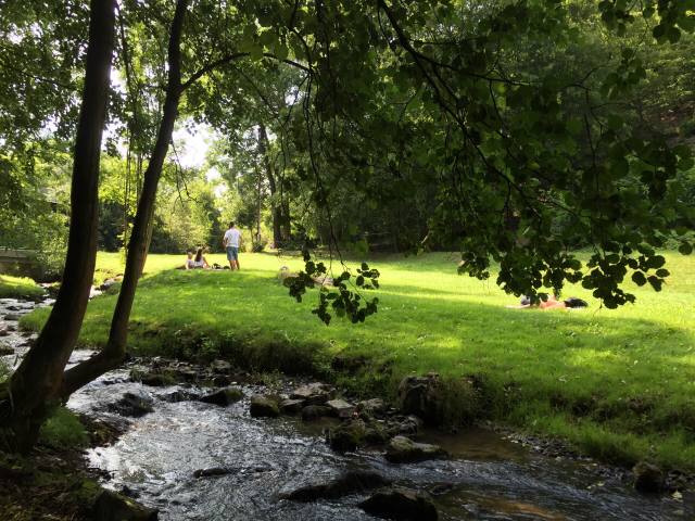 숲길을 걷다 보면 간간히 개울도 만나고 넓은 풀밭도 많다. 자전거가 다닐 수 있는 길도 따로 만들어져 있다. 간단히 소풍 나온 사람들은 일광욕을 즐기기도 하고 더러는 바비큐 파티를 하는 장면도 볼 수 있다.