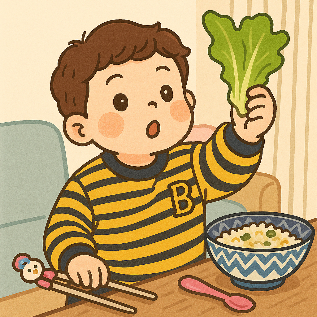텃밭에 나간 로리는 상추 앞에서 "와아~!" 하고 탄성을 지른다.