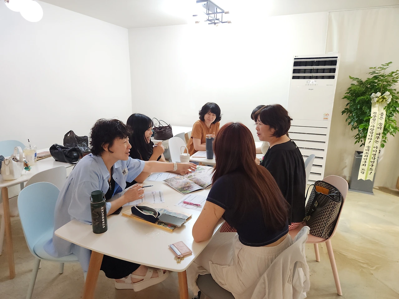 공립 유치원 교사들이 중심이 된 작은 모임, <숨비소리>를 소개하고자 한다. 해녀가 물질을 하다 숨을 고르는 그 소리처럼, 이들은 그림책을 읽으며 잠시 숨을 고르고 세상을 다시 바라본다. 한 달에 한 번, 그림책 한 권을 정독하고 질문을 만들며 토론하고, 그것을 아이들에게 전할 방법을 연구한다. 그들의 손끝에서 작은 환경 실천이 시작되고, 그 실천은 아이들의 마음속에 ‘지구를 사랑하는 씨앗’으로 심어진다. 이 모임의 주관은 권문정 소장(아이 생각 연구소)이다.