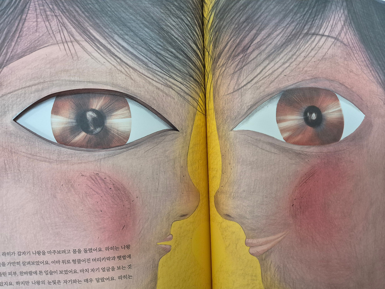 책 속 배경은 ‘티베트’라 불리는 눈의 나라다. 모든 것이 얼어붙을 만큼 추운 곳에서 쌍둥이 형제 라히와 나왕이 태어난다. 두 아이는 똑같이 커다란 눈망울을 가졌지만, 성격은 달랐다. 형 라히는 겁이 많고 소심한 반면, 동생 나왕은 대담하고 명랑하다.