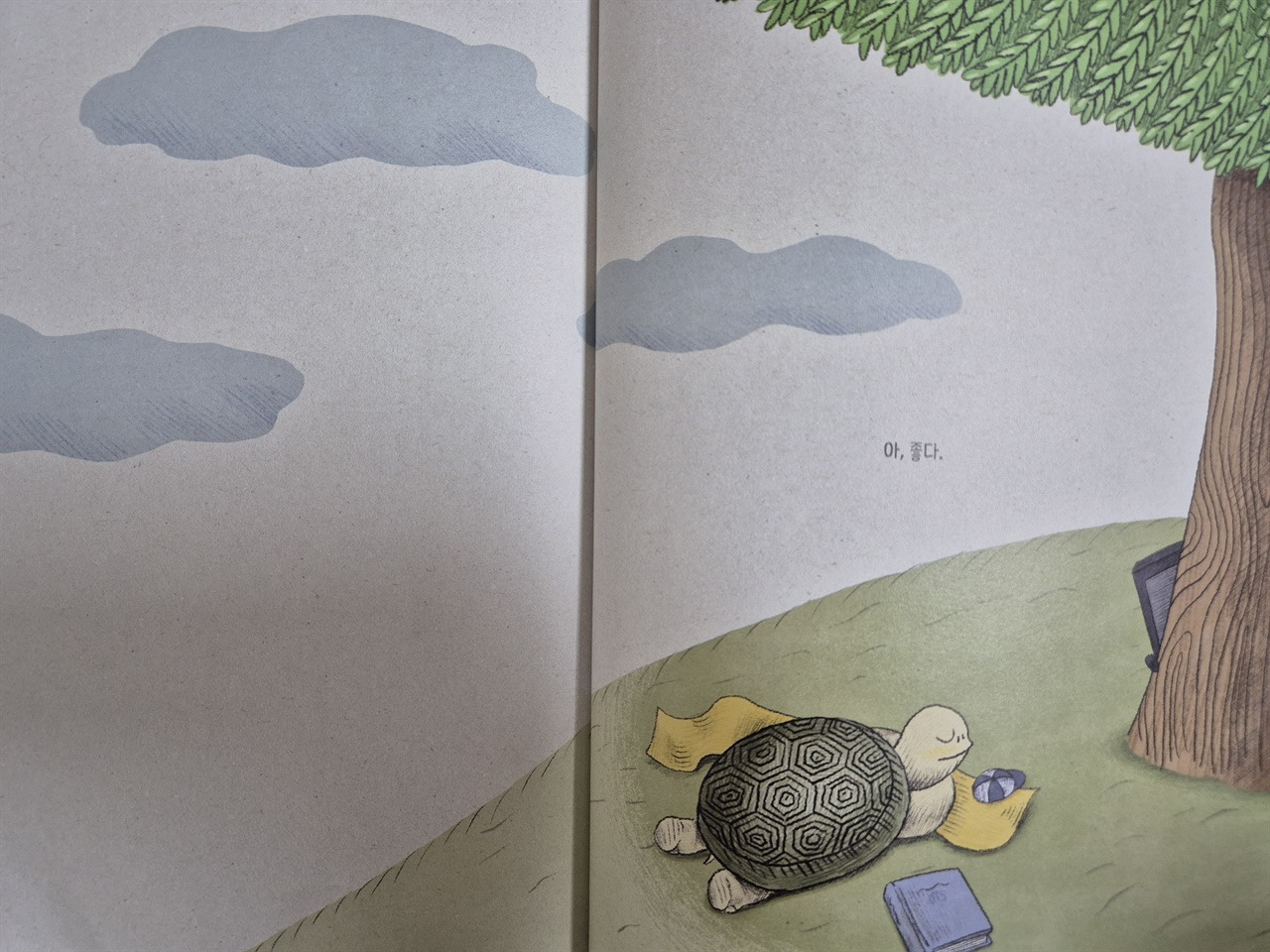 그 차이는 미묘하지만 결정적이다. 거북이가 보여준 느림과 고요는 디지털 시대의 과속에 제동을 건다. 그의 휴식은 아무도 보지 않아도 충분히 아름답다.