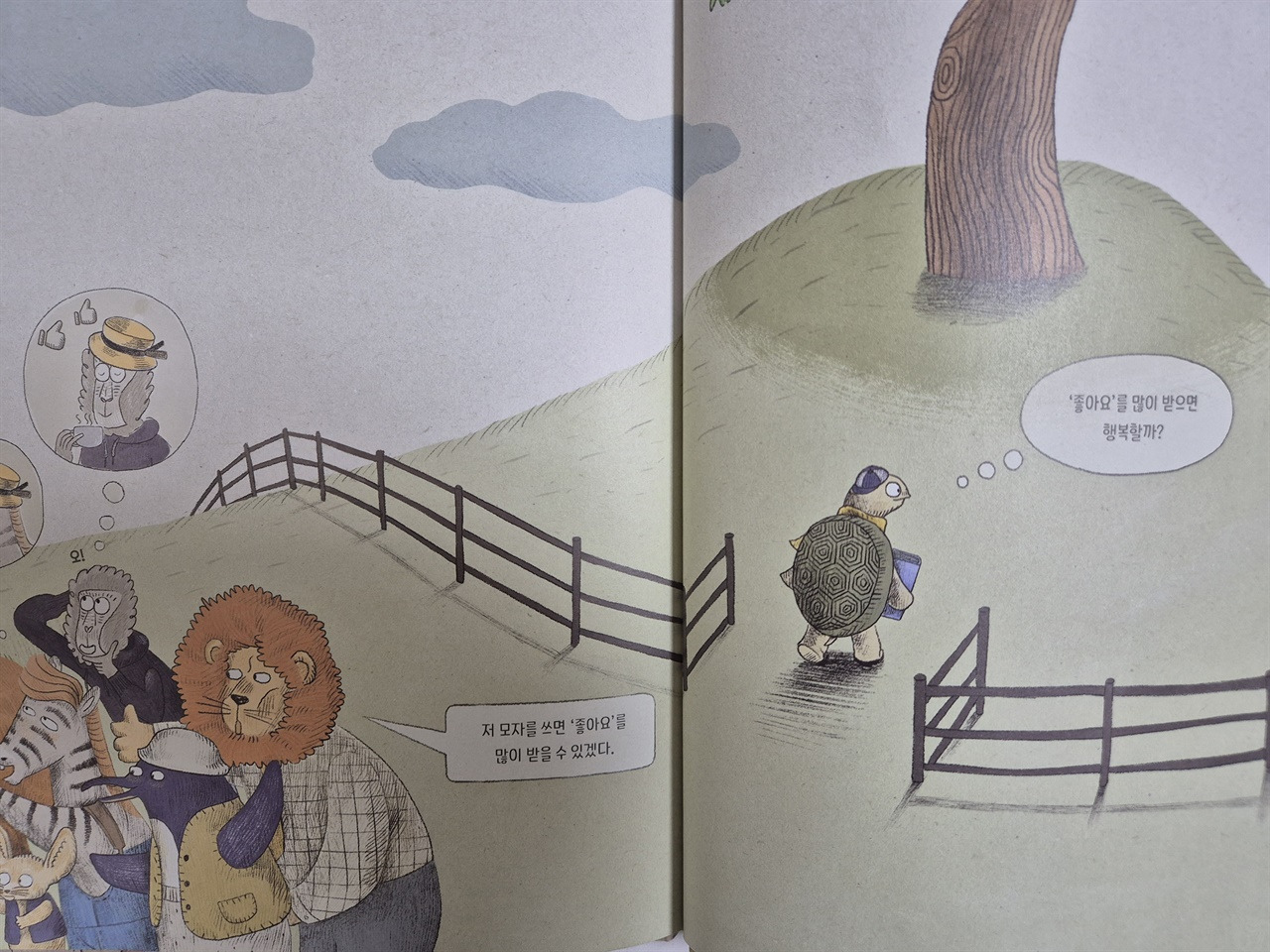 사회학자들이 말하는 ‘인정의 욕망’이란 자기 존재를 타인의 시선으로 확인하려는 충동이다. 좋아요가 늘수록 기분이 좋지만, 동시에 그 숫자에 종속된다. 책 속 동물들이 끊임없이 ‘좋아요’를 좇는 모습은 이 욕망이 얼마나 쉽게 경쟁과 모방으로 변질되는지를 보여준다.