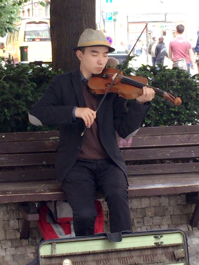 길을 걷다가 쉬어 갈 곳을 찾는다. 둘러보면 곳곳에 앉을만한 곳은 많이 있다. 심오한 바이올린 소리에 끌려 다가간 곳에 동양인으로 보이는 청년이 연주를 하고 있다. 시크릿가든의 세레나데, 녹턴, 표정도 분위기도 딱 그 음악과 어울린다. 인간의 가슴 깊숙한 곳에 고여있는 슬픔 또는 어둠 같은 것들을 아름답게 끌어올리는 선률이 거리에 입혀진다. 맞은편 벤치에 앉아 편안하고 차분한 마음으로 감상을 하며 쉴 수 있었다. 이 도시는 이렇게 내게 쉬어 갈 여유를 마련해 주는구나. 감사한 마음으로 동전하나 살며시 놓아두고 자리를 뜬다.