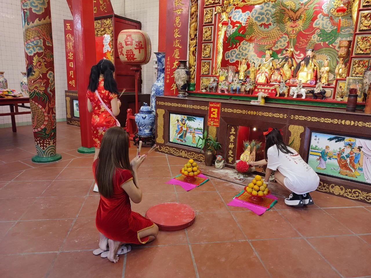빨갛게 노랗게 장식된 제단에는 용이 큼지막하게 그려져 있었다.