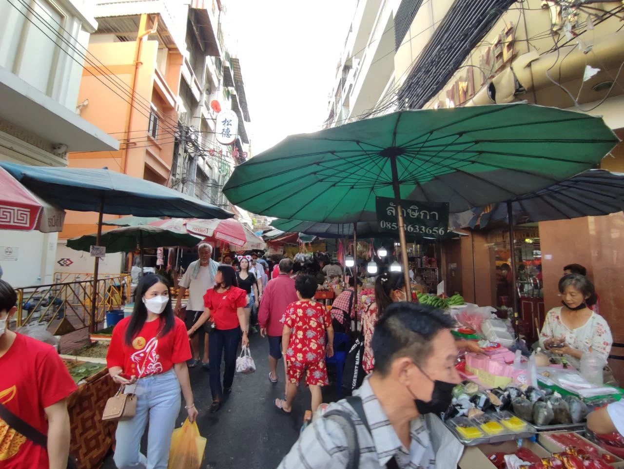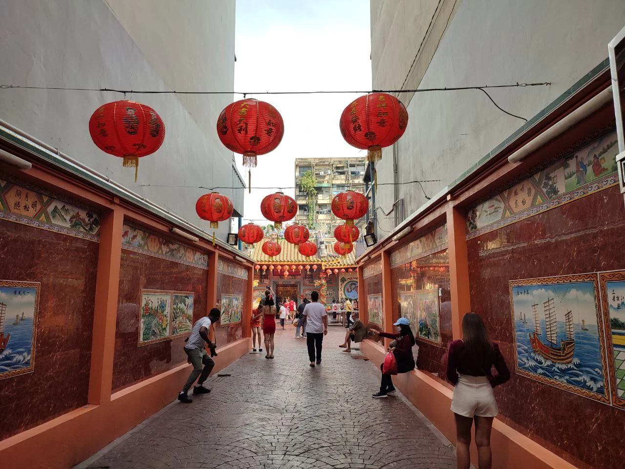 곳곳에 빨간 옷을 입고 중화풍 장신구를 걸친 사람들이 보였다.