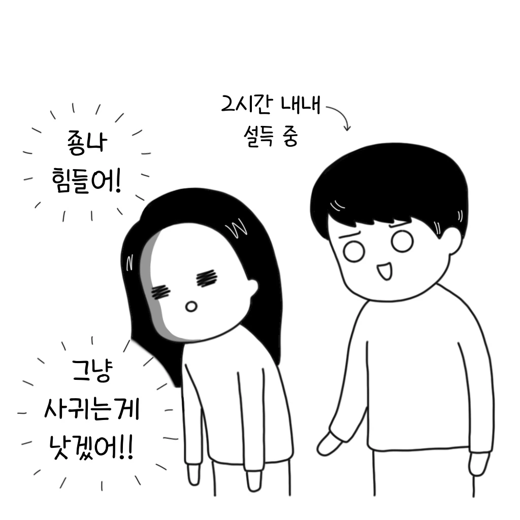 아무리 그래도 두 시간이나 설득할 줄은 몰랐는데.