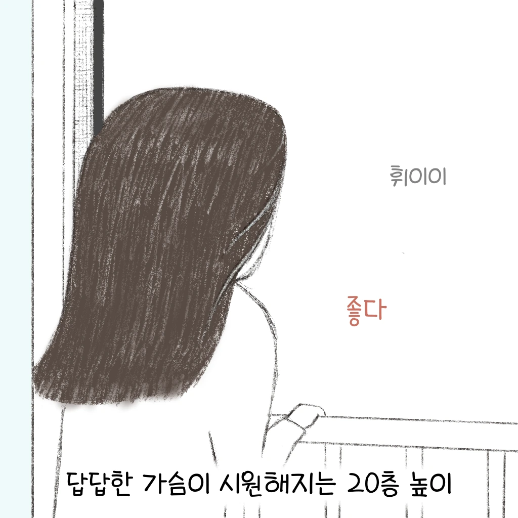 한발 한발 창틀 위로 올라가니 가슴이 더 시원해졌다
