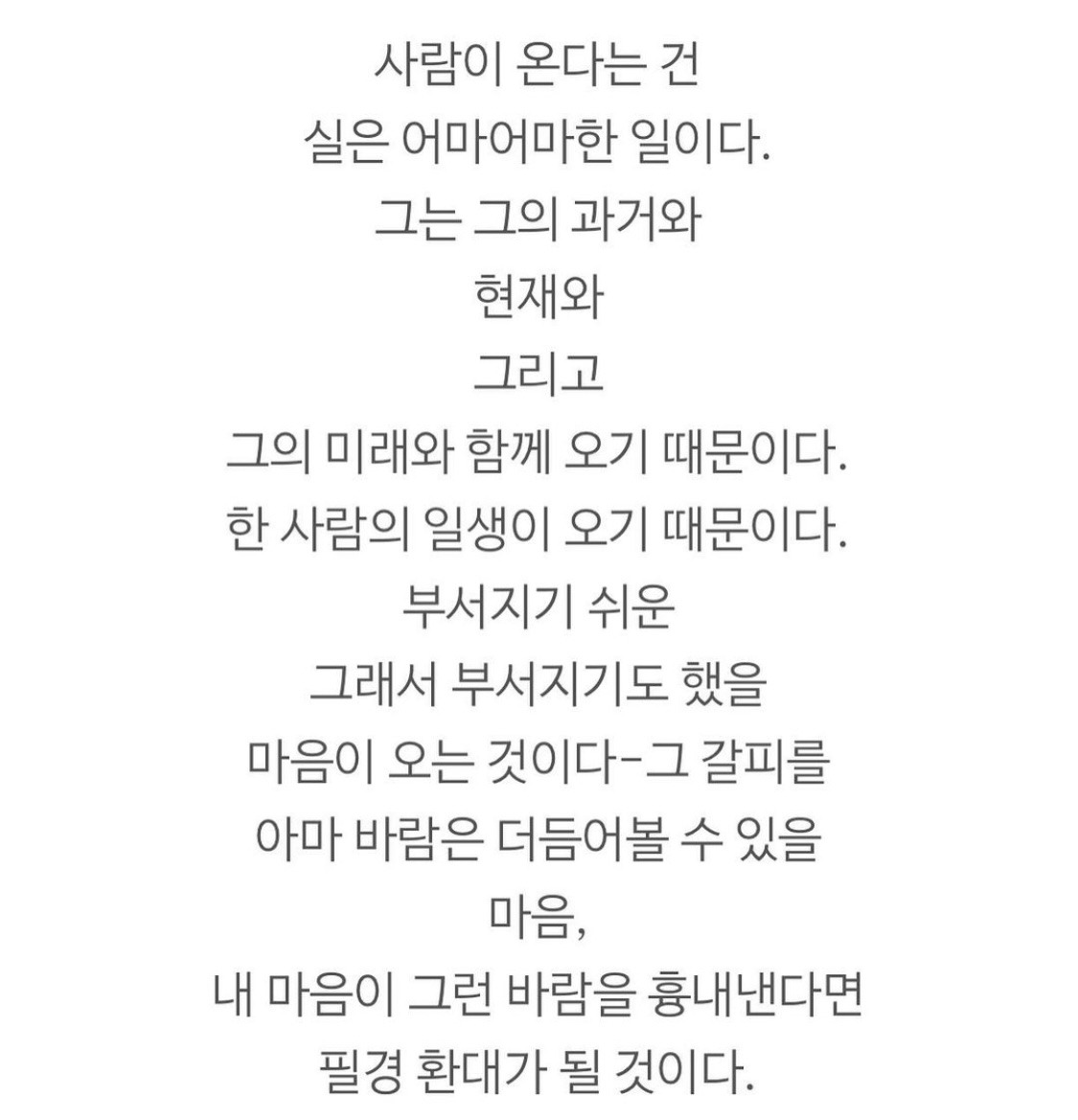 그날 집으로 돌아오며 수빈이와 어떻게 지내야 할지 고민했다. 난 살가운 사람도 아니기에 그냥 흘러가듯 두기로 했다. 감히 수빈의 마음을 내가 헤아릴 수 있을까. 무턱대고 다가갔다간 더 큰 상처를 줄 수도 있진 않을까. 그냥 어쩌다 만난 인생의 언니, 아빠의 아내, 그리고 수빈이 필요로 할 땐 엄마가 될 수 있는 존재. 그렇게 시간에 맡기기로 했다. 만난 지 3년 차인 우린 아직도 어색한 사이다.