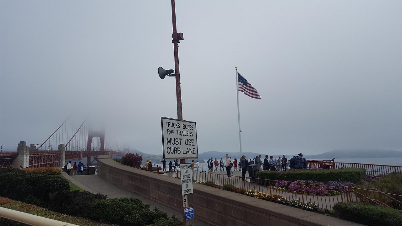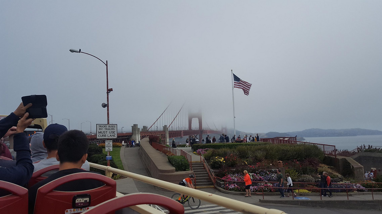 버스 타고 금문교를 지났는데요. 아래 사진 보시면 알겠지만 안개가 심했고 바람이 엄청 불어서 진짜 추웠어요. ^^