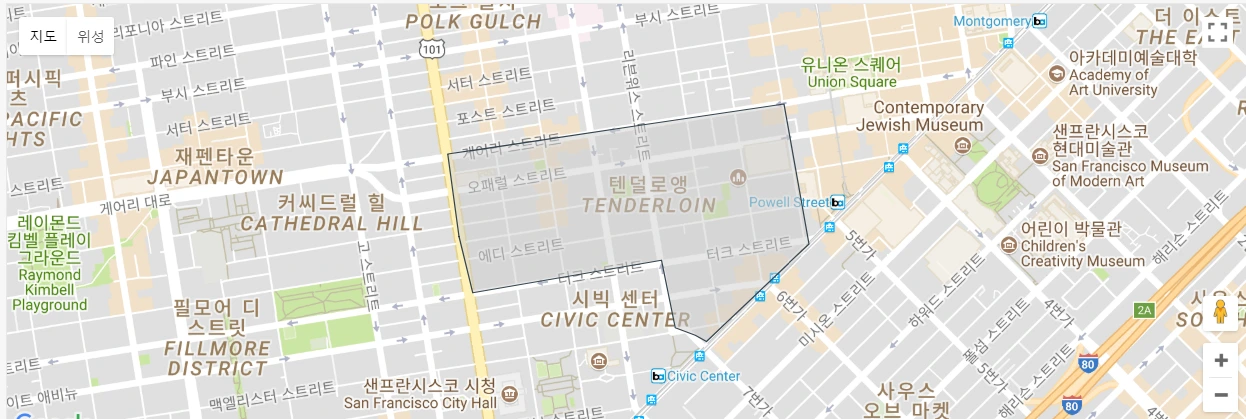 나중에 알고 보니 제가 묶었던 곳이 Tenderloin이라고 불리는 곳에 위치했었는데, 위험한 지역이라고 들었으니 여러분들도 가지 마세요 ㅜㅠ