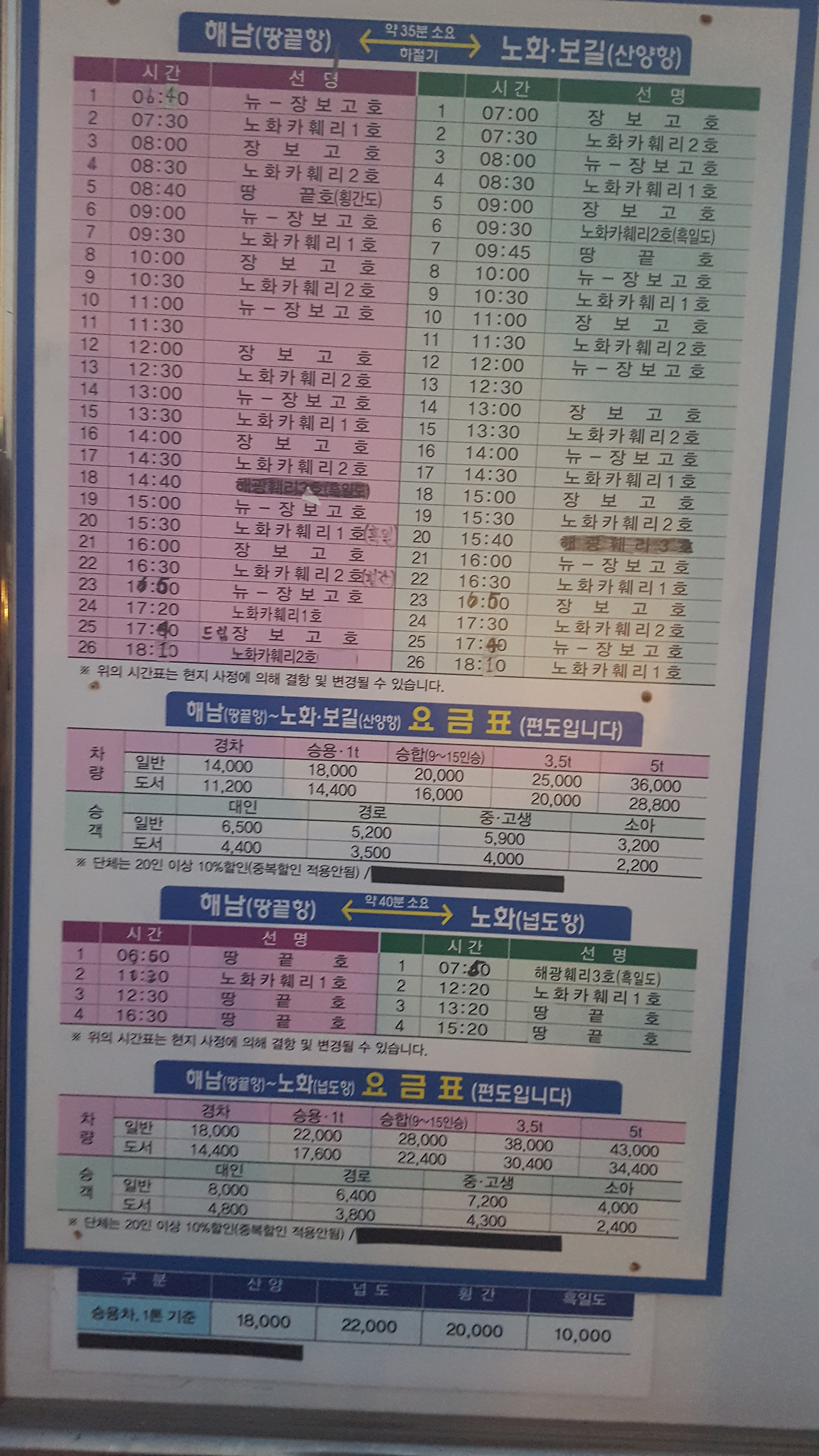 땅끝 마을에서 보길도로 직항은 없고 노화도라는 섬으로 이동해서 택시 타고 보길도로 가야 합니다.