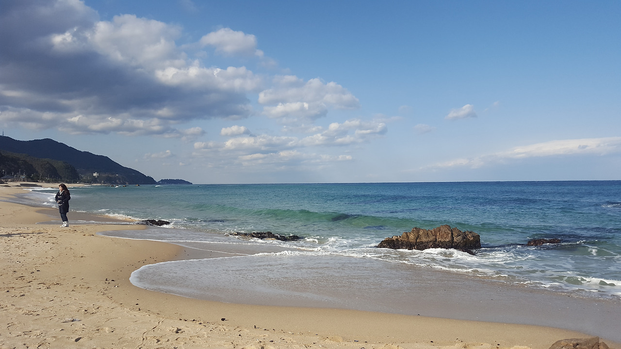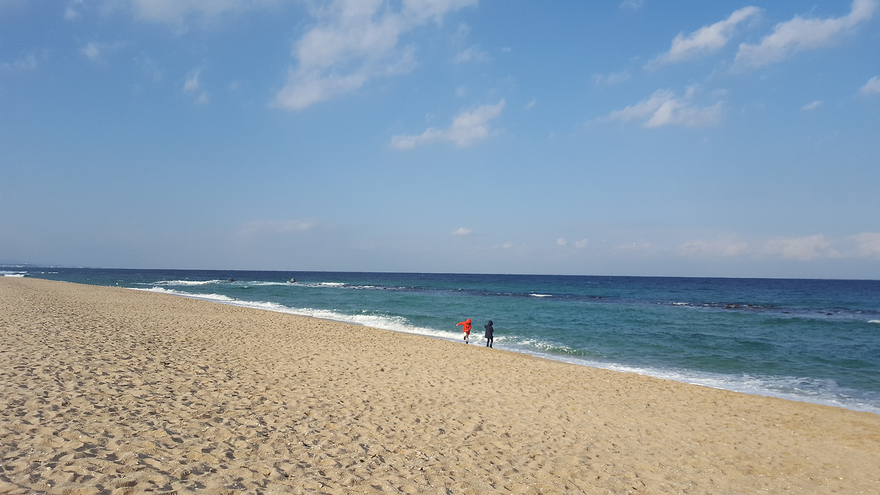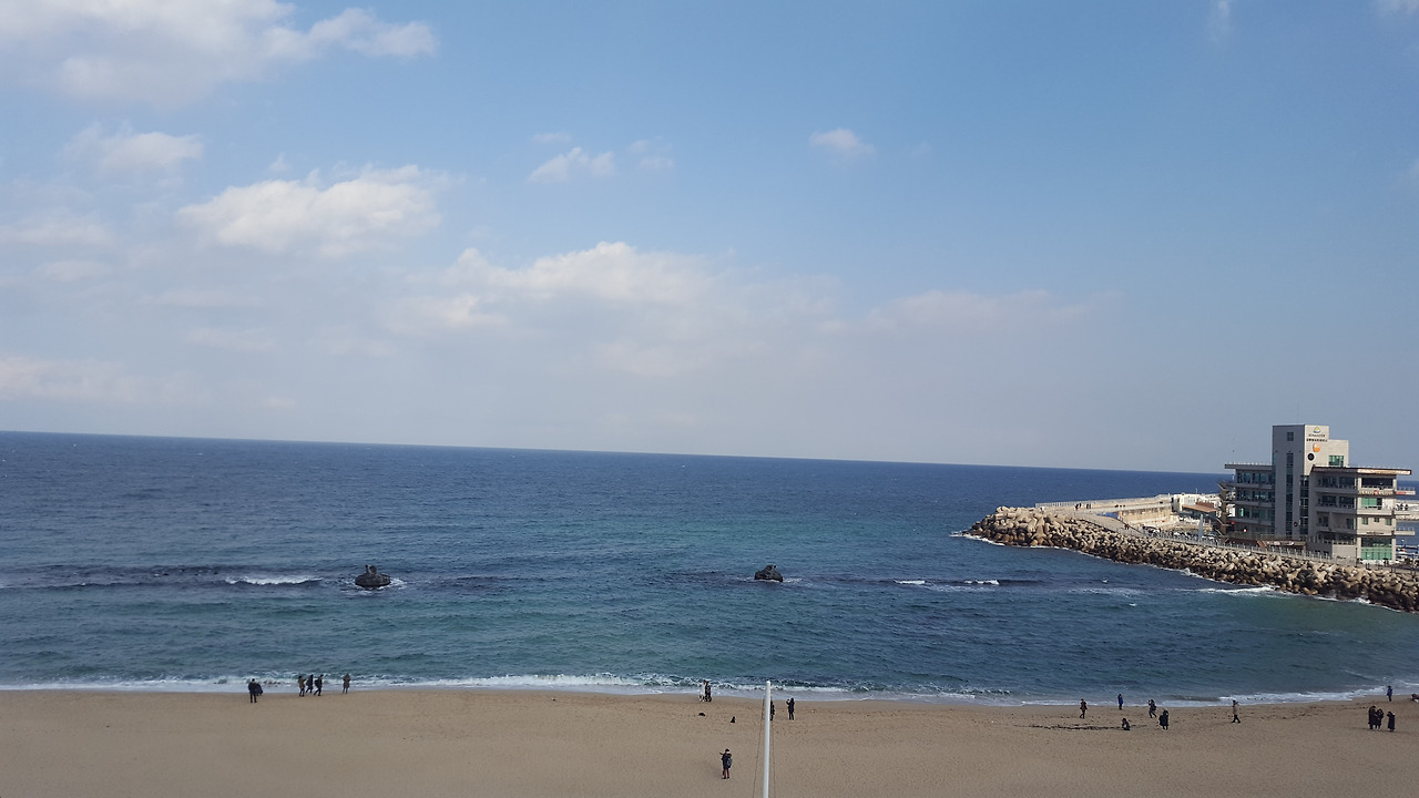 우와~ 깜짝 놀았어요. 바다 색깔이 너무 예뻐서요. 바다 색깔이 투명하고 파랗더라고요. 파도만 잔잔하면 올해 여름에 놀러 가서 봤던 크로아티아 바다와 비슷하다고 생각했습니다.