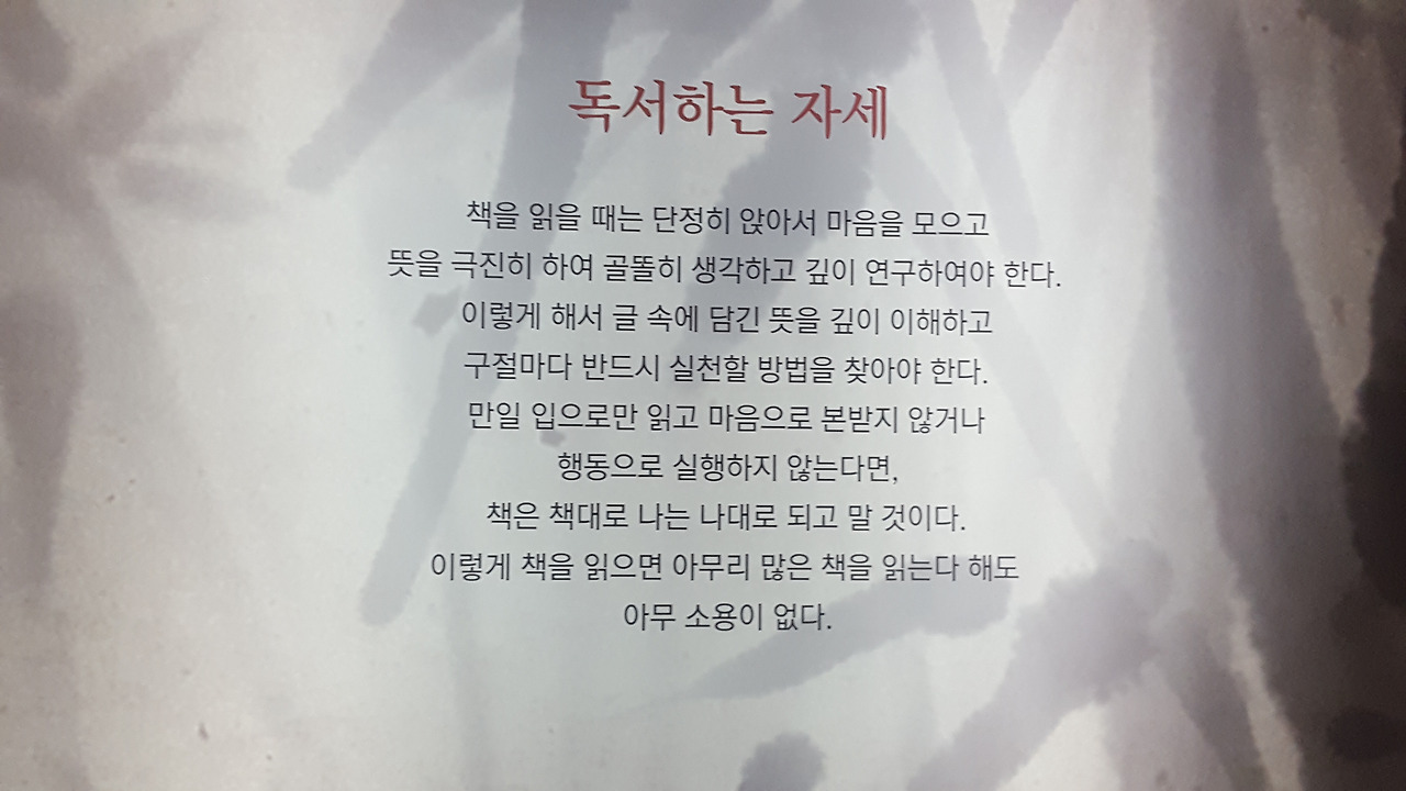 입으로만 읽고 마음으로 본받지 않거나 행동으로 실행하지 않는다면 책은 책대로 나는 나대로 되고 말 것이다. 아무리 많은 책을 읽는다 해도 아무 소용이 없다.