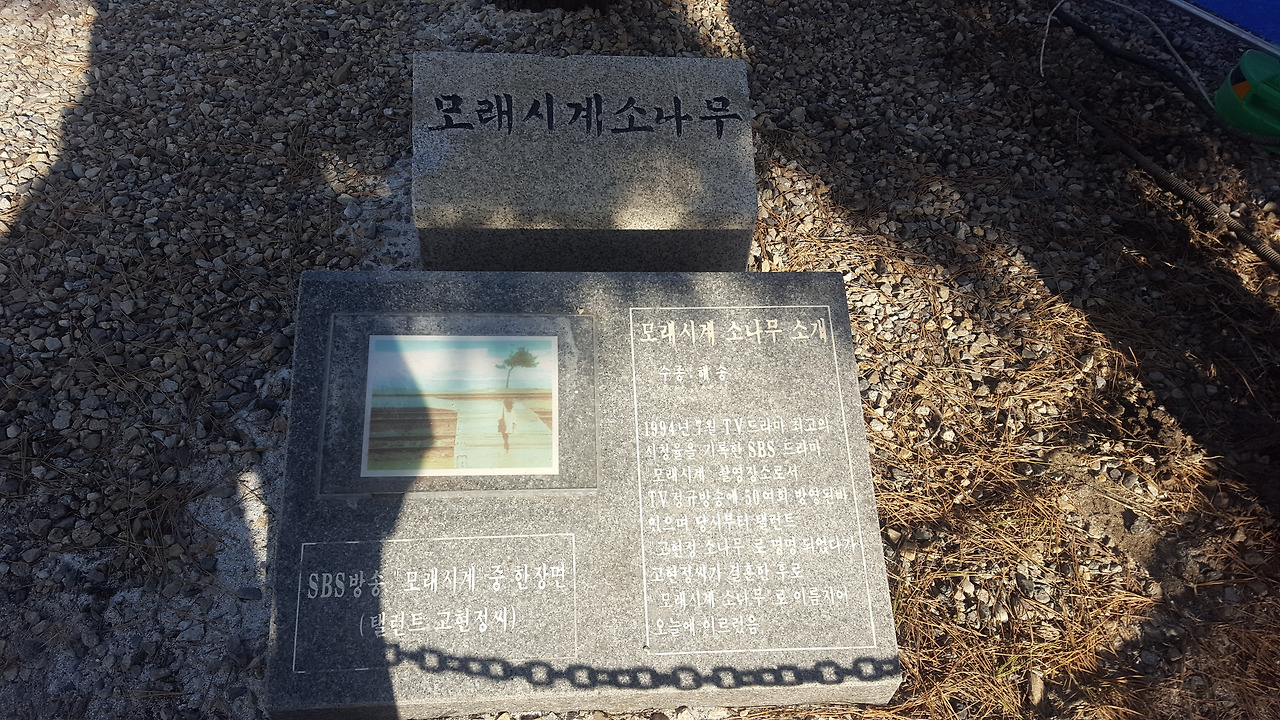 어릴 적에 봤지만 잘 기억 안 나는 '나 지금 떨고 있니'의 모래시계 소나무가 여기 있습니다. 원래 '고현정' 소나무였는데 그녀가 결혼하고 모래시계 소나무로 바뀌었다고 쓰여있습니다;;;; 왜죠?