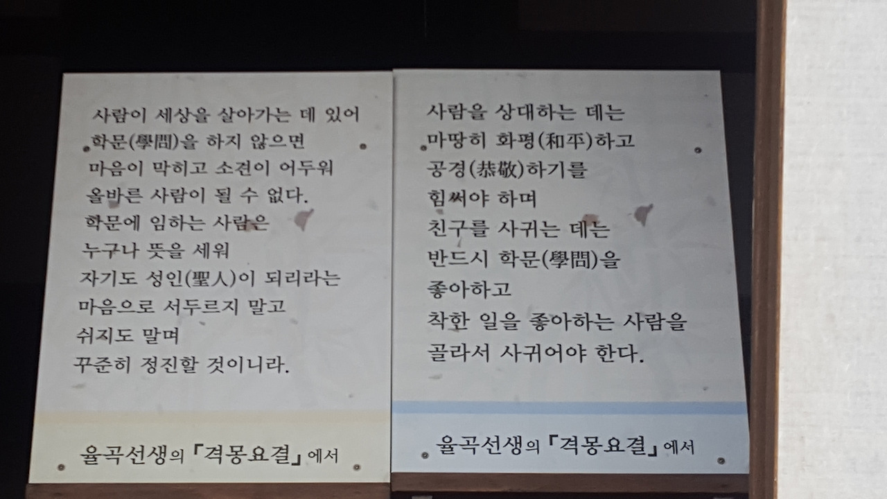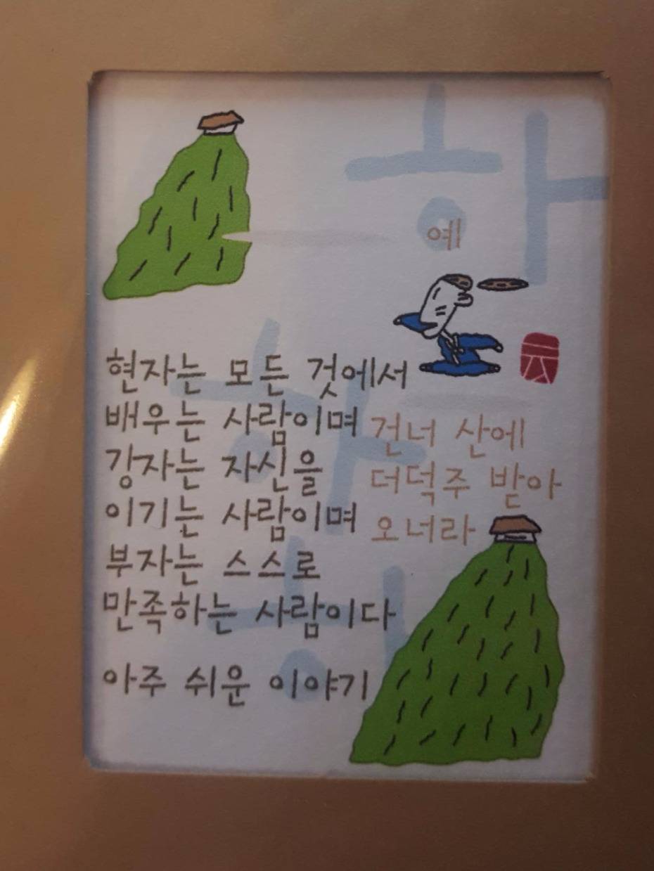 오죽헌 기념품 가게에서 이번 여행에서 가장 감명 깊었던 문구를 발견했습니다.