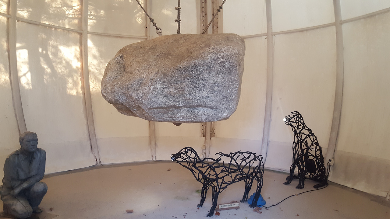 무거운 돌댕이도 걸려있고요. 전시작품에 대한 설명은 찾지 못했는데요. 이 돌덩이를 보니 마음 한켠이 묵직한게, 인생에서 각자가 가진 어떤 짐이 아닐까, 무엇인가에 짓눌려 사는 우리의 현실이 아닐까 생각해봅니다.