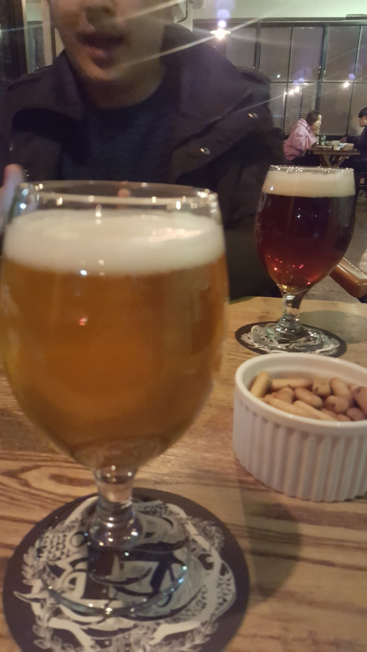 솔직히... 저녁식사는 좀 그냥 그랬어요... 알쓸신잡에 나오는 수제 맥주집을 갔는데 메뉴도 친절하게 설명되어 있지 않고 가격이 좀 나가더라고요. 아래 치킨 및 감자 웨지가 2만 원이거든요. 그리고 맥주 안주로 먹을 수 있는 이것저것 플래터가 2만 원인데 뭐로 구성되어 있는지도 정확히 쓰여 있지 않고요. 개인적으로는 비추입니다. 좋았다고 하시는 분들도 많으시고 개인차가 있으니 참고하세요 ㅎ 그냥 저는 그렇다고요...