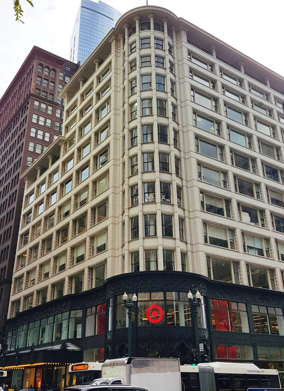 1, 2층만 리노베이션 했던 이유는 바로 이 앞으로 건물 2층 높이에서 지나다니는 시카고의 L( elevated의 줄임 말) 라인이 1892년 완공되었기 때문이다. 시내를 천천히 다니는 지하철 차량 안 사람들의 시선이 건물 2층에 오래 머무르게 되었다. 이에 지상 보행자의 눈요기를 위한 1층과 함께 2층에도 널따란 창과 건물 장식이 필요했다.