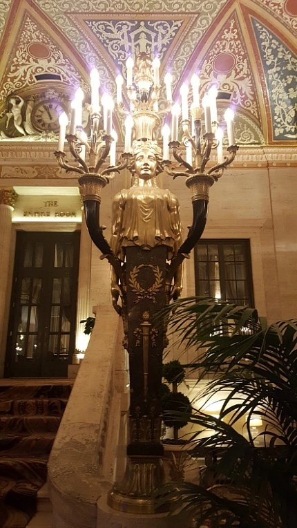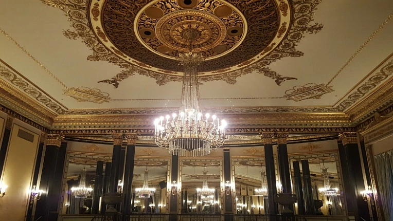 그래서 이 건물에는 티파니 컴패니에서 제작한 24K 금도금 대형 촛대가 아직도 번쩍번쩍 그 세를 과시하고, 프랑스 화가가 그린 대형 천장화가 잘 복원되어 있다.