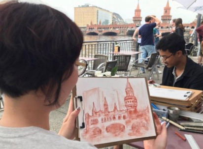 이면지에 이런 저런 풍경을 그리며 대강 손을 풀고 브라운 색의 파스텔로 오버바움 브릿지를 스케치하고 있었더니 선생님이 칭찬을 멈추지 않았다. 실제 풍경을 보며 그림을 그린 건 처음이라, 다른 곳도 아닌 늘 꿈꾸던 도시 베를린에서 그림을 그린다는 사실을 믿을 수가 없었다.